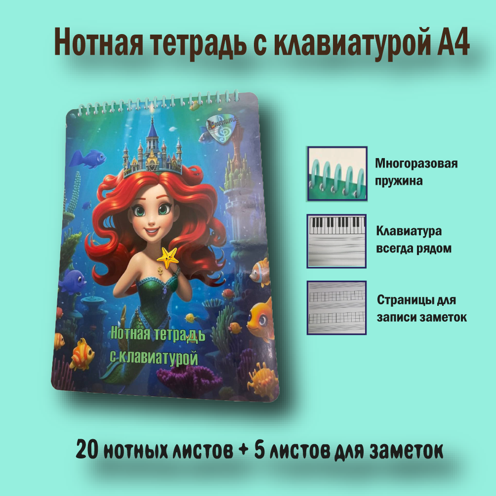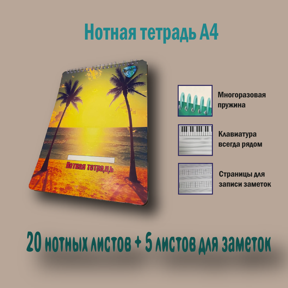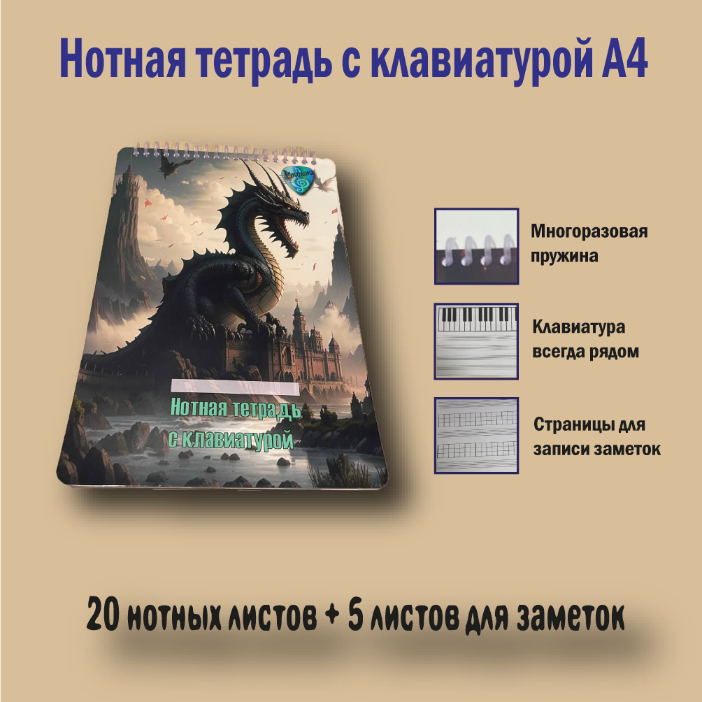 Нотная тетрадь с клавиатурой, для удобной работы с интервалами, аккордами, транспонированием и т.д. 20 листов с клавиатурой и 5 листов для заметок. Ламинированная обложка сохранит надолго шпаргалки, даже если тетрадь закончится, многоразовая пружина подойдёт для блокнотов и записных книжек, а заметки вначале и в конце тетради дадут ответы на возникшие вопросы.