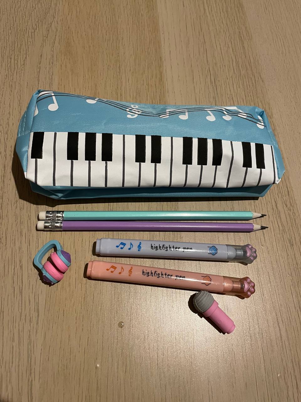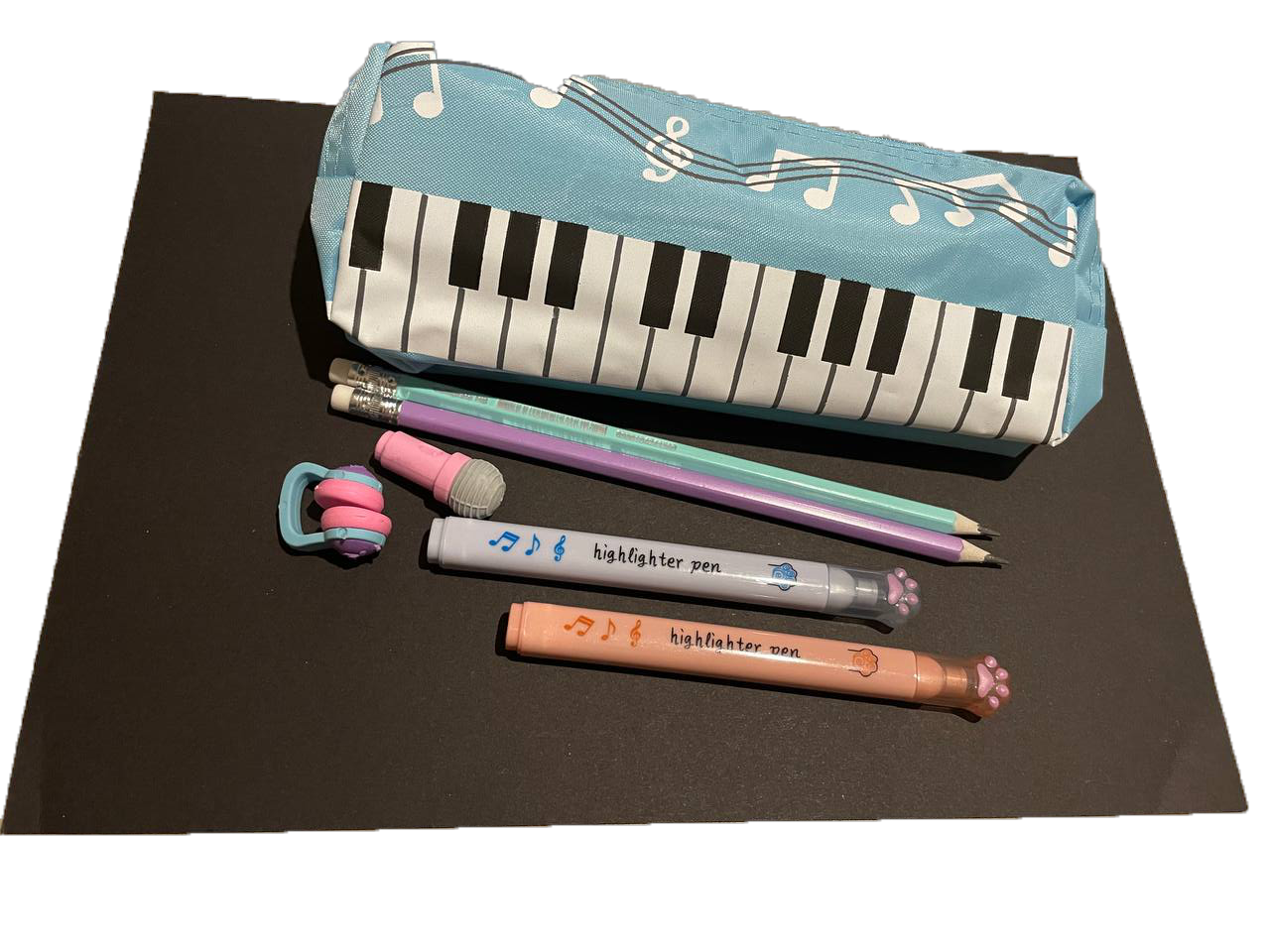 Современный пенал с музыкальной тематикой для девочек и мальчиков предназначен для хранения ручек, карандашей, ластиков и других канцелярских принадлежностей. Пенал с клавиатурой содержит 2 карандаша, 2 ластика (клавиши, наушники, микрофон), 2 текстовыделителя . Выбор конкретных ластиков и текстовыделей не предоставляется. Название цвета мелодия вечера Комплектация
