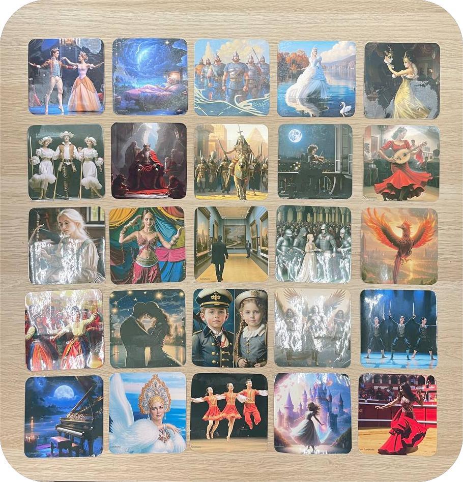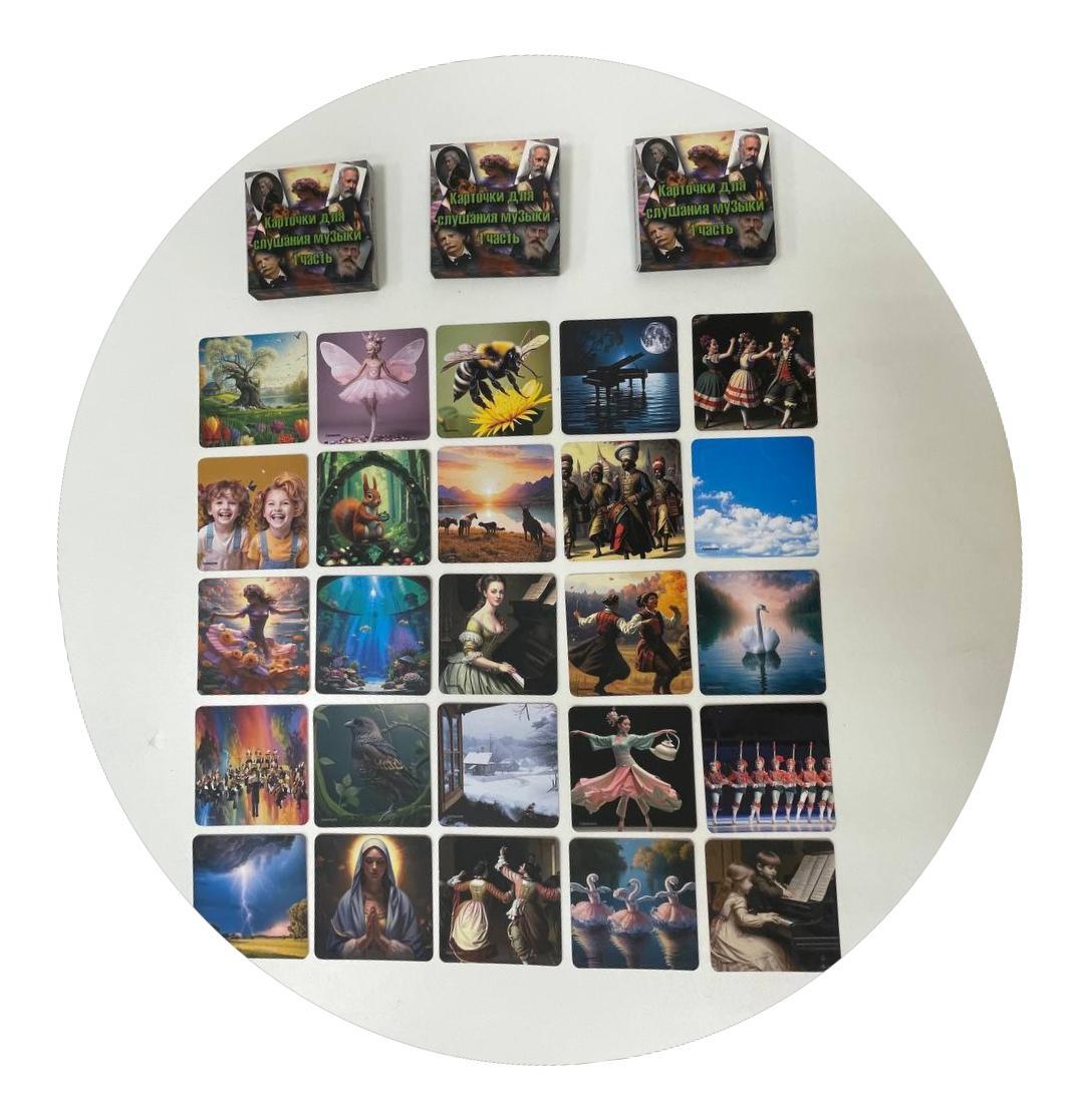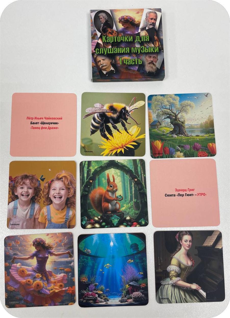 Карточки для слушания музыки предназначены для детей и взрослых и помогают в общем музыкальном развитии по классическим произведениям. В комплект входят 25 красочных карточек для лучшего восприятия прослушиваемых музыкальных произведений. Запоминайте классическую музыку с помощью ассоциаций и воображения, в этом вам помогут наши карточки. После прослушивания и изучения каждых 5-10 произведений, устраивайте "угадайку", и находите соответствующую карточку.