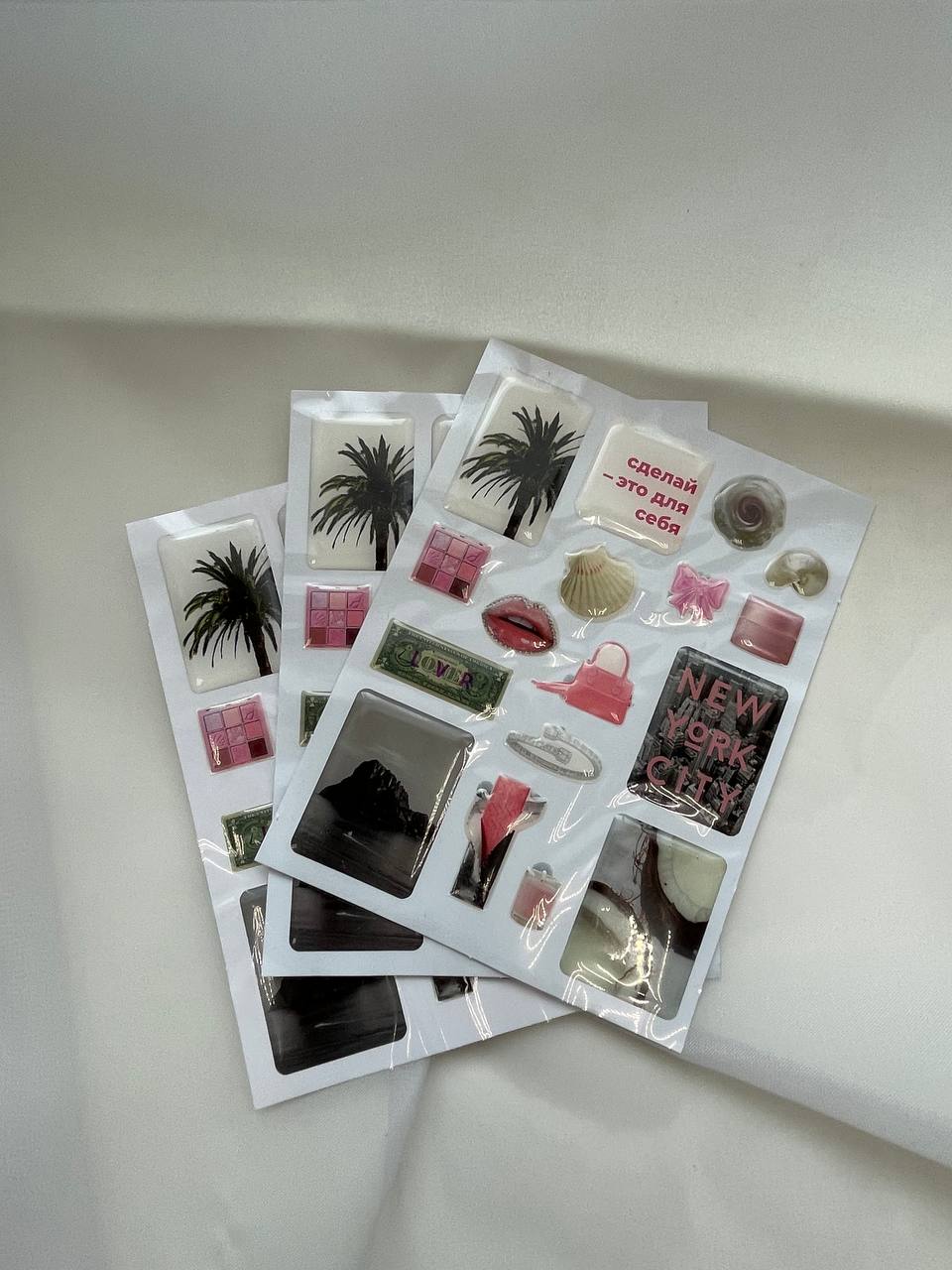 Стикеры могут приклеиваться на телефон, компьютер, ноутбук и любую плоскую поверхность. Они приятные на ощупь, могут защитить ваш гаджет при падении от сколов и царапин. Выглядят такие стикеры очень стильно и модно.