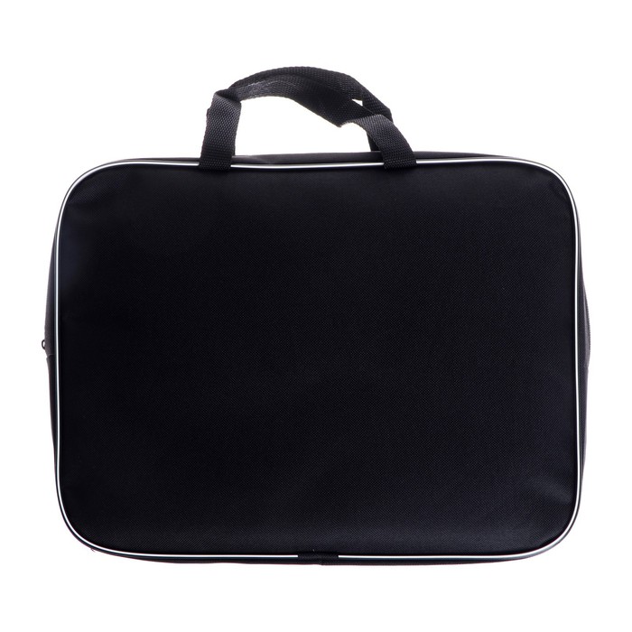 Папка текстильная на молнии с ручками, формат A4+. Размер 270 х 70 х 350 мм. Материал: износо-морозостойкий водоотталкивающий 100% полиэстер. Предназначена для транспортировки учебных принадлежностей, документов и различных аксессуаров. Имеет одно большое отделение с расширением и карманом внутри, застежка на молнии с мягким ходом. Для комфортной переноски ручки папки выполнены из прочной стропы