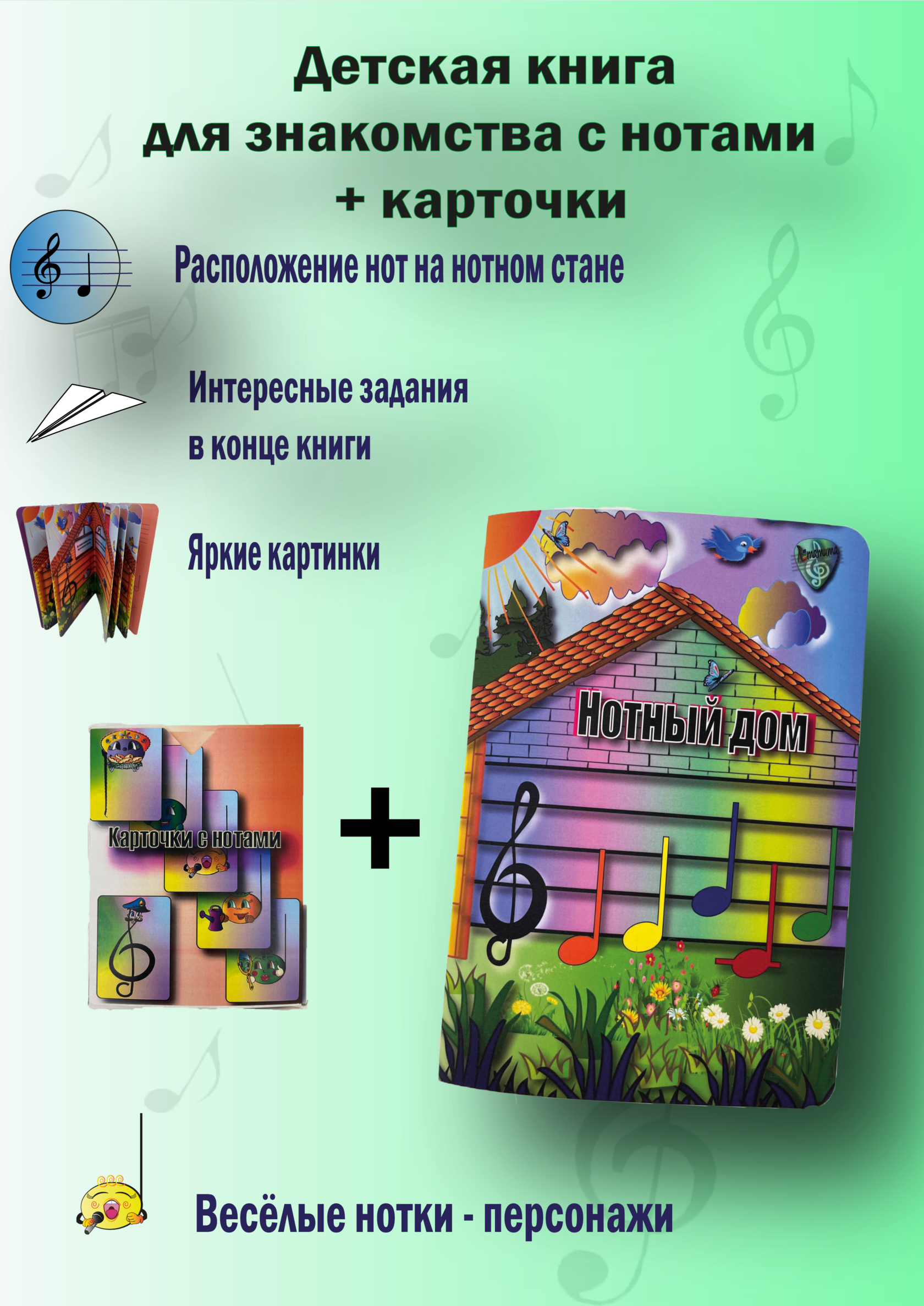 Детская обучающая нотная книга (музыка) "Нотный дом" + карточки